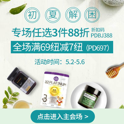 活动内容:新西兰PD药房初夏解乏养生正当时,全场满69纽用码“PD697”减7纽,专场任选3件用码“PDBJ388”88折。...
