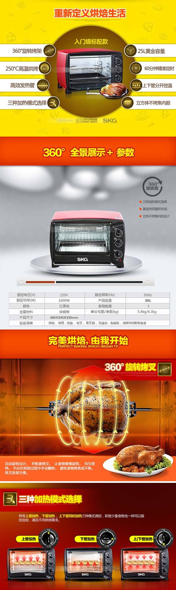 带360度烤架,热风循环烤箱,3口之家用可入~型号为 SKG25B的SKG电烤箱,立方体内胆,带360度旋转烤架以及热风循环烘焙,可以让食物受热均匀;...