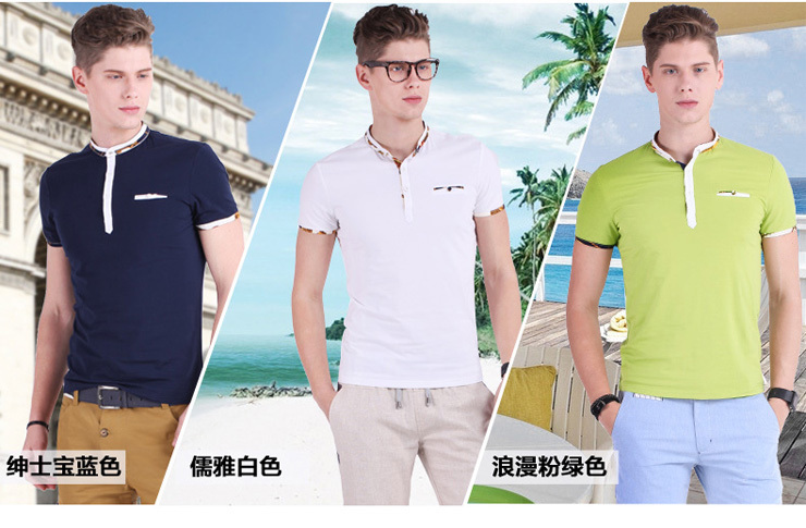 2014夏季新款韩版时尚休闲小立领修身短袖男士T恤