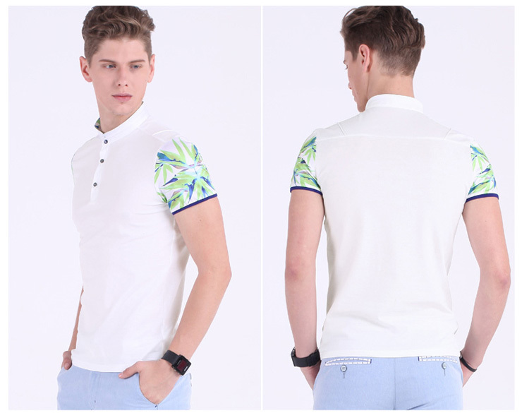 韩版立领天堂鸟印花男士T恤
