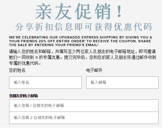 REVOLVE推出了新的促销活动,这次活动没有直接给出8折优惠码,需要输入自己的姓名和邮箱,并填写至少两位家人及朋友的电子邮箱地址,即可邀请她们一同收...
